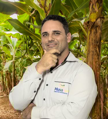 Gabriel Lage, desde 2017 presta assistência técnica à Fazenda Flamboyant, reestruturando todo o manejo e tratos culturais, que com sua assessoria vem apresentando ótimos resultados. Logo depois contamos também com sua assistência, desde a implantação de bananal na Fazenda Primavera. O trabalho tem sido muito satisfatório, sempre visando a melhoria da lavoura e o aumento de produtividade. Para isso recebemos visitas mensais, onde o mesmo acompanha de perto as necessidades identificadas. Logo após as visitas, recebemos relatórios com orientações de tratos culturais, controle de pragas e doenças, manejo de irrigação, adubações e o mais que se fizer necessário. Gabriel está sempre aberto ao diálogo no intuito de alcançarmos soluções imediatas. Sua intervenção é sempre oportuna e eficaz. Estamos muito satisfeitos com o trabalho prestado pela Musatec, através do Gabriel Lage.